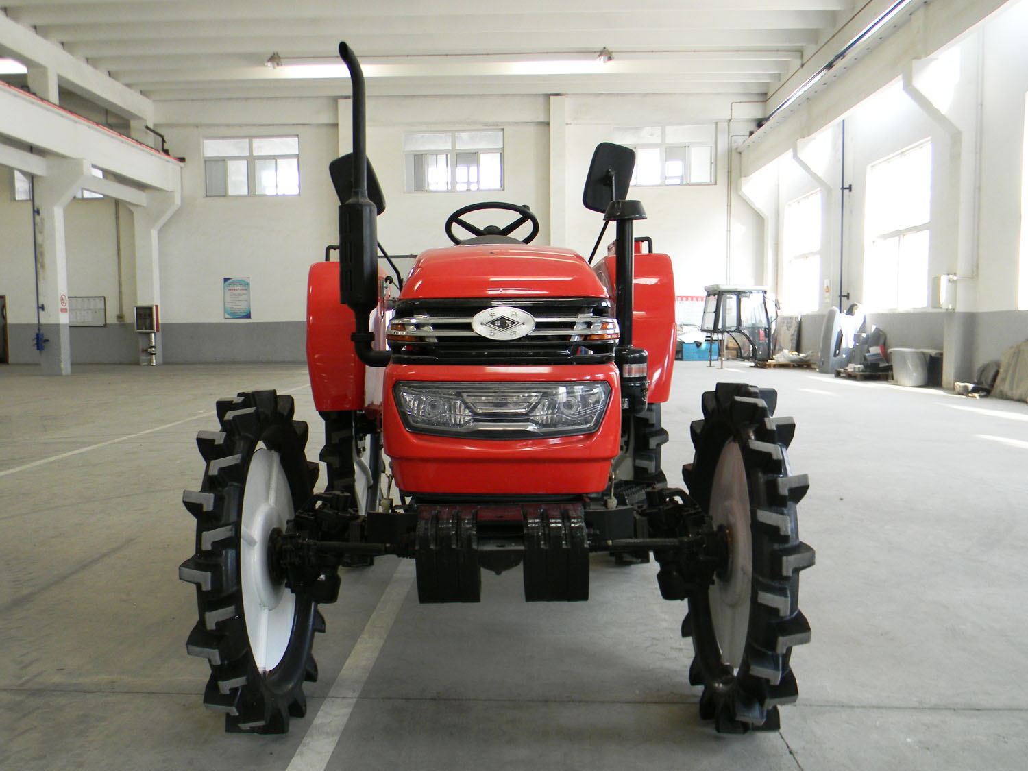 本系列產(chǎn)品是一種水田用高地隙的農(nóng)用四輪驅(qū)動(dòng)拖拉機(jī)。具有高地隙、牽引力大、適應(yīng)性強(qiáng)、操縱靈活、啟動(dòng)省力、使用維護(hù)方便等優(yōu)點(diǎn)。裝有牙嵌式差速鎖,提高了機(jī)組的通過性;主要配套動(dòng)力為四缸立式柴油機(jī),采用(2+1)×2組合式變速箱、單作用離合器、多路閥式液壓輸出、氣制動(dòng)、后置動(dòng)力輸出等配置。